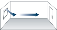 Cross ventilation / Cross ventilation is the most effective way to ventilate a room. To do this, windows and doors are opened to create a draught and this leads to the entire amount of air being exchanged within 2 – 4 minutes.