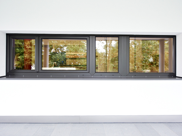 Das intelligente Baukonzept verbindet Wohn- und Gewerbeeinheiten mit flächenschondendem Parkraum. Die Fenster in der >Architecture Color< Graphit Schwarz betonen den urbanen Stil. Die Terrassen wurden farblich passend mit dem