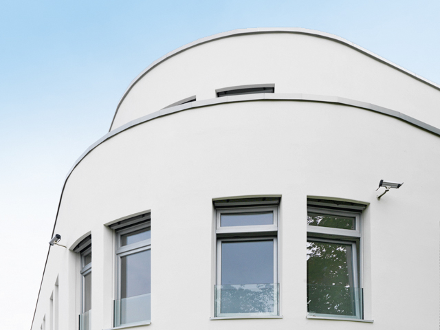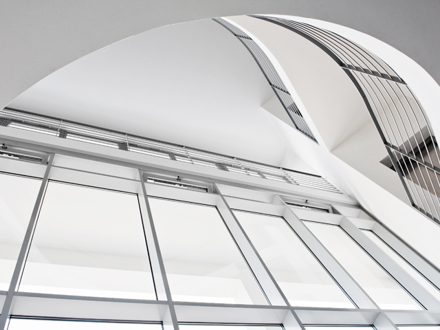 Das Konzept der Praxisgemeinschaft stellt den Menschen in den Mittelpunkt und möchte für die Patienten eine freundlich-helle Wohlfühl-Atmosphäre mit großzügigen Fensterflächen schaffen. Der elegante Eindruck wird durch den schimmernden Look der hochwertigen Folienbeschichtung ›Architecture‹ Colors in Weiß Aluminium unterstützt.