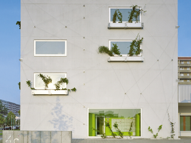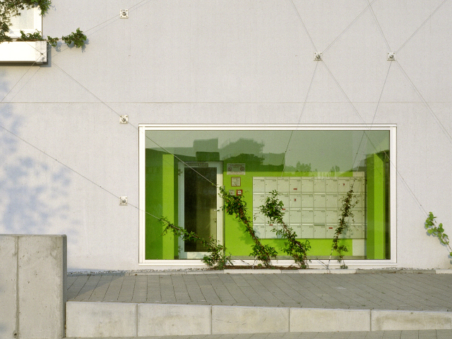 The entire building was insulated in compliance with the requirements set out in the Energy Saving Regulation. With very good insulation values the PVC windows contribute decisively towards the energy efficiency of the building and are fitted with Regel-Air control vents that can be adjusted by the residents to cover minimum ventilation requirements.