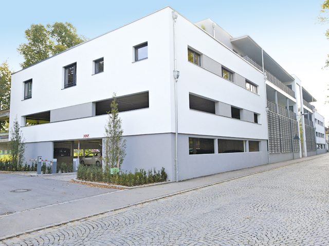 The sustainable design concept shows the intelligent combination of residential apartments and commercial units with a space-economising parking area. The windows in the ›Architecture Color‹ Graphite Black accentuate an urban style. The front terraces are paved in matching colour with the
